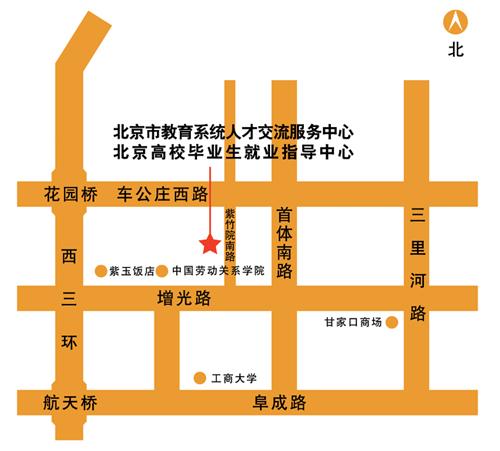 南:增光路与紫竹院南路交汇的十字路口向北300米路西。中国劳动关系学院东门外北侧。