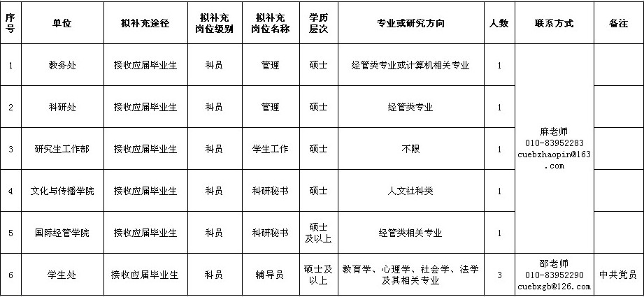 附表3:首都经济贸易大学2014年其他专业技术岗位招聘计划