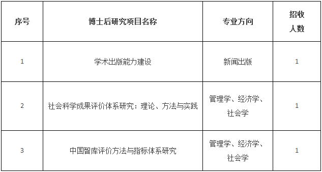 中国社会科学院社会科学文献出版社2014年度博士后招收简章